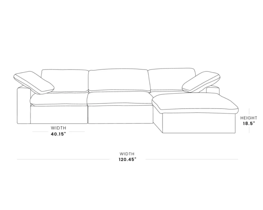 With a length of 120.45" this 4-piece sofa provides ample space for lounging while maintaining a sleek profile. With Juno's customizable arrangements, you can create your ideal layout to suit any space