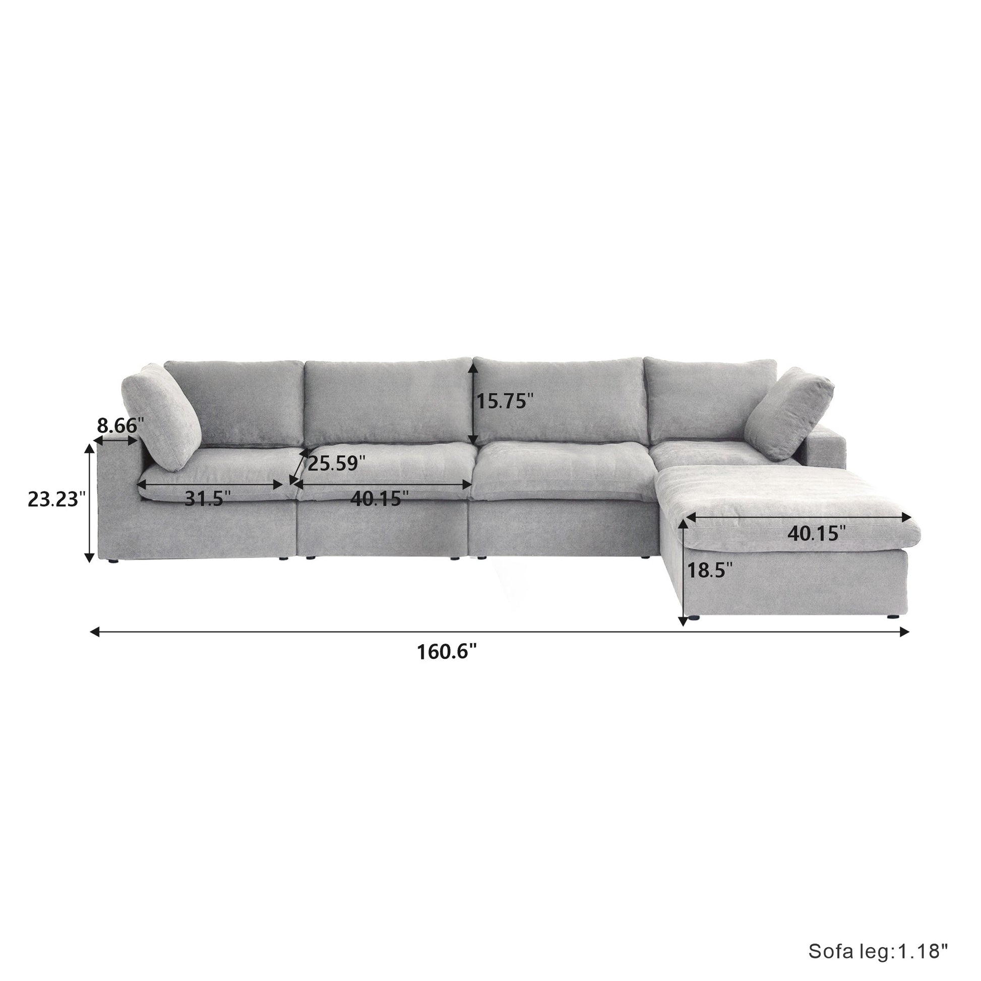 Classic Modular 4-Seater Sectional in Gray